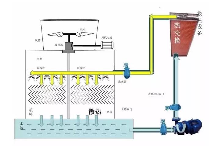工业生产或制冷工艺过程中产生的废热,一般要用冷却水来导走。冷却塔的作用是将挟带废热的冷却水在塔内与空气进行热交换,使废热传输给空气并散入大气中。